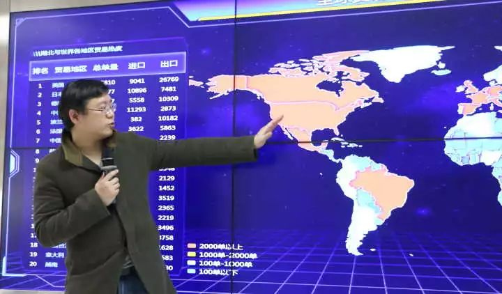 图为湖北省电子口岸运行服务中心工作人员介绍外贸大数据