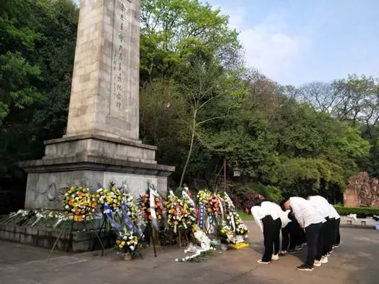 图为党支部成员在辛亥革命武昌首义纪念碑前鞠躬