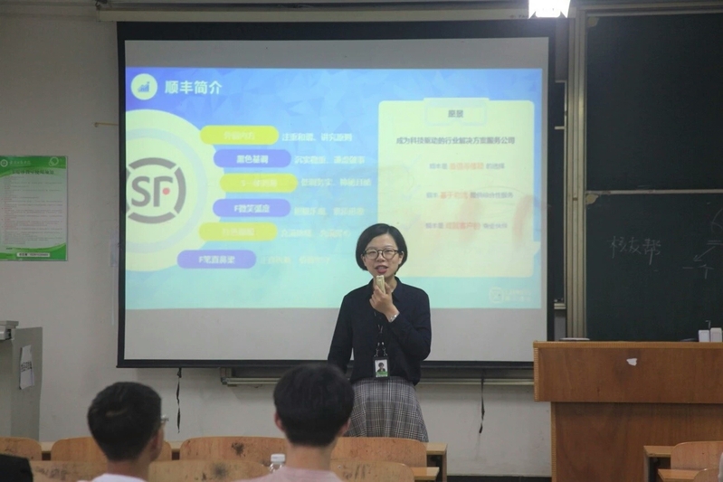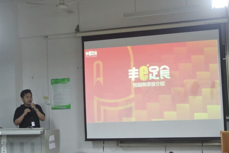 随后,顺丰项目运营经理金畅向同学们介绍了公司的创业项目——“丰e足食”。金经理详细描述了该项目的模式和前景,呼吁有创业想法的同学加入这一项目,在项目中充分展示自己的开拓能力。