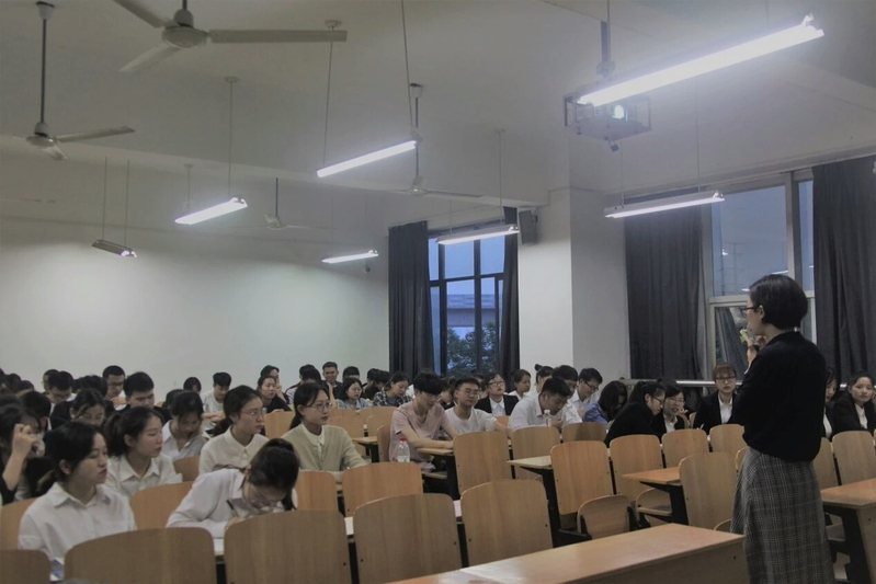 图为湖北顺丰速运有限公司人力资源招聘及人才发展组负责人王茜为同学们介绍公司情况 摄影:李芳婷