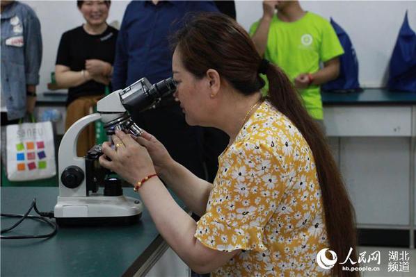 家校互动日,环生学院的一位学生家长正在实验室使用显微镜 摄影:柳康龙