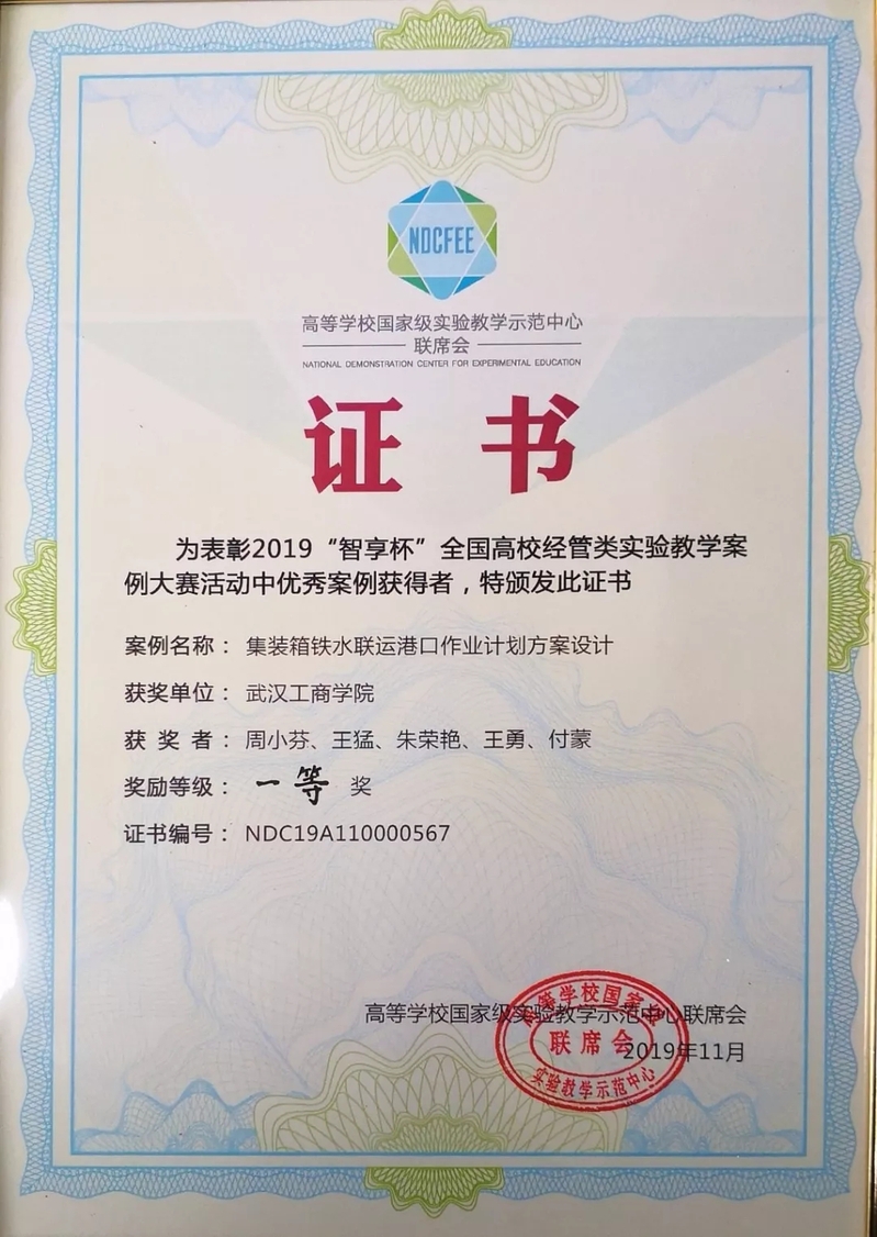 11月22日至24日,第四届“智享杯”全国高校经管类实验教学案例大赛总决赛在广西财经学院举行。新葡的京集团35222vip物流学院周小芬副院长团队开发的实验教学案例《集装箱铁水联运港口作业计划方案设计》,从来自武汉大学、上海交通大学、北京航空航天大学、对外经济贸易大学等39所高校的73个实验教学案例中脱颖而出,荣获(管理组)一等奖。