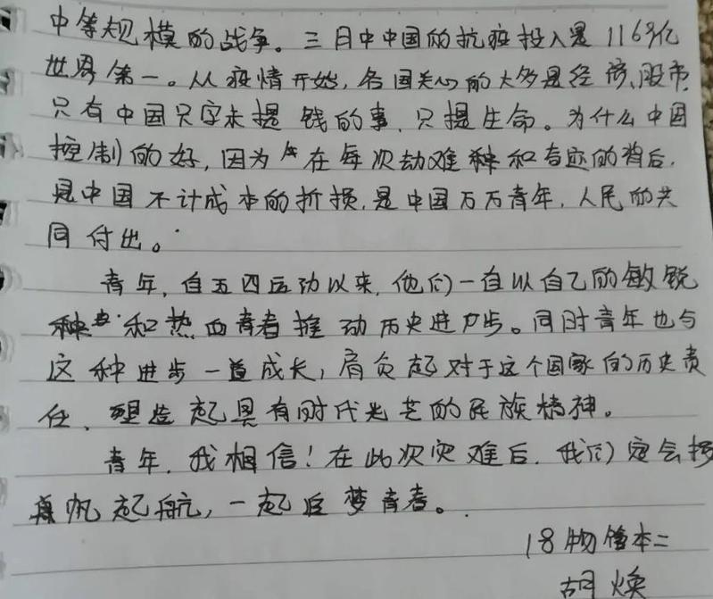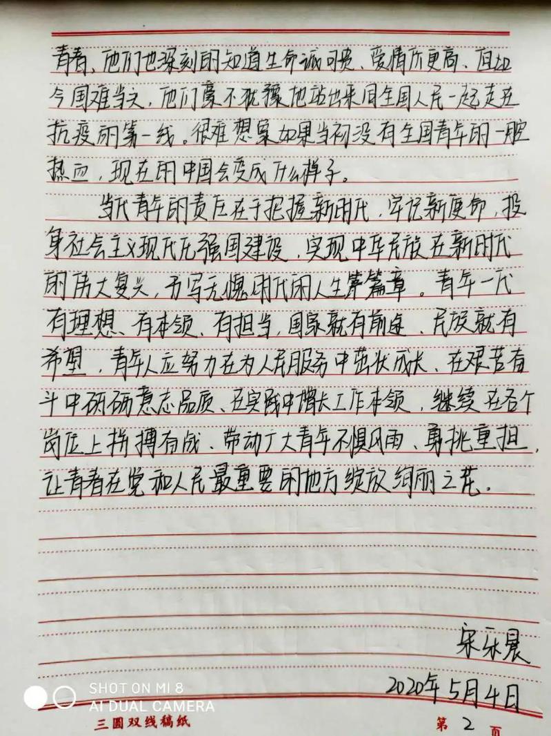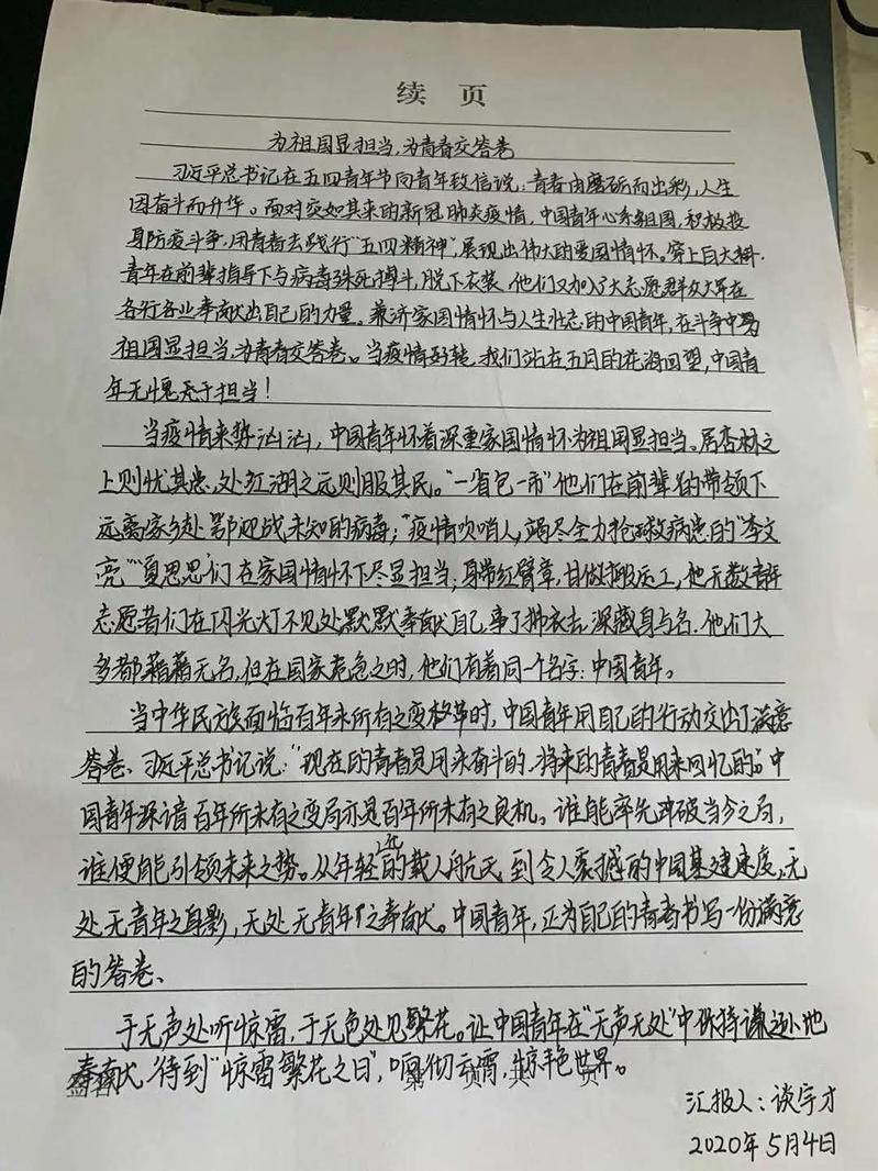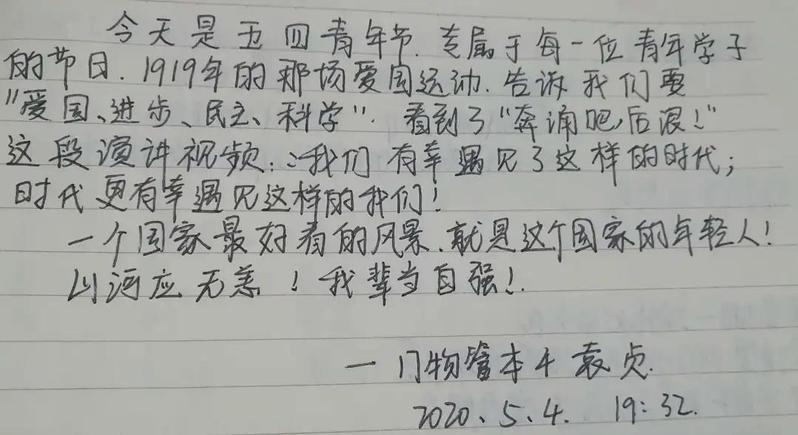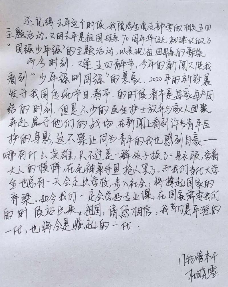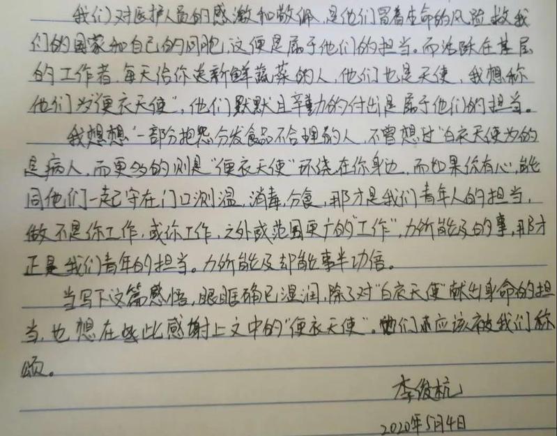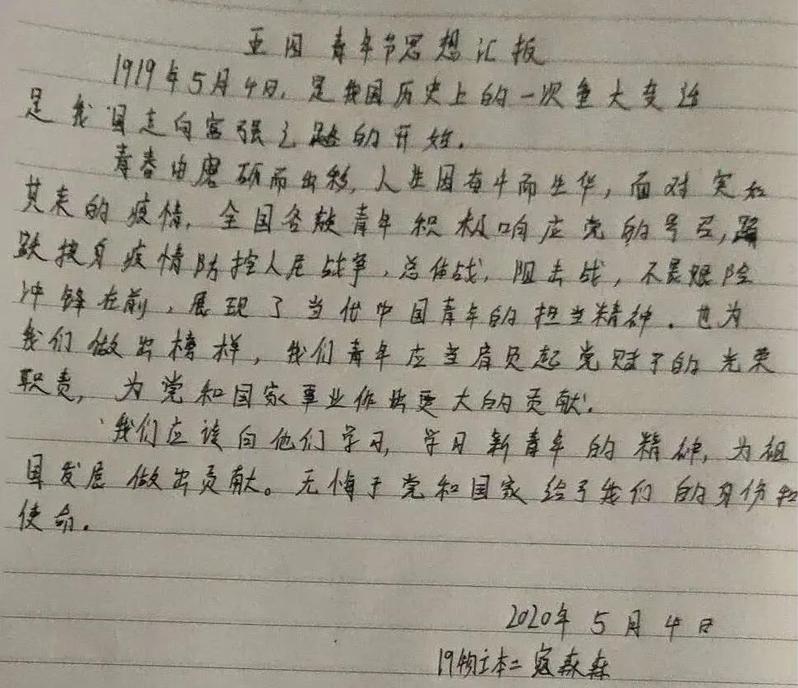 2020年5月4日,是五四运动爆发101周年纪念日。这一天,物流学院的入党积极分子和学生党员们,通过学习习近平总书记对全国各族青年寄语、共青团中央和共青团湖北省委的五四表彰决定,以及近段时间以来,活跃在抗疫一线的青年们的先进事迹,以手写心得体会的形式,向先进们学习,向先进们看齐!