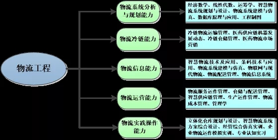 根据物流岗位群对专业能力的要求,确定了物流工程专业的五大专业能力,即物流系统分析与规划能力、物流运营能力、物流信息能力、冷链物流技术能力、物流实践操作能力,进一步梳理、细化分解成相应的能力要素,并给出培养这些能力要素的实现途径: