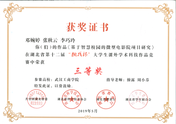 2012年,入选湖北省高等学校战略性新兴(支柱)产业人才培养计划。