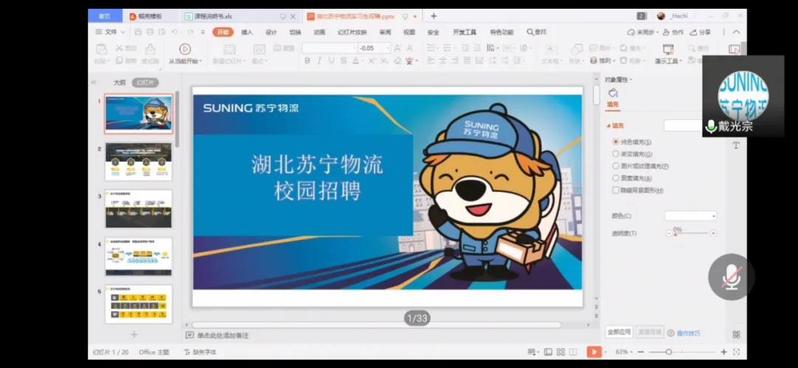 6月30日上午9:30,第一场线上校园招聘会——湖北鄂宁苏宁物流有限公司招聘会开展宣讲。该公司招聘经理戴光宗主讲。物流学院2017级物流管理及物流工程共96位同学听取线上宣讲。