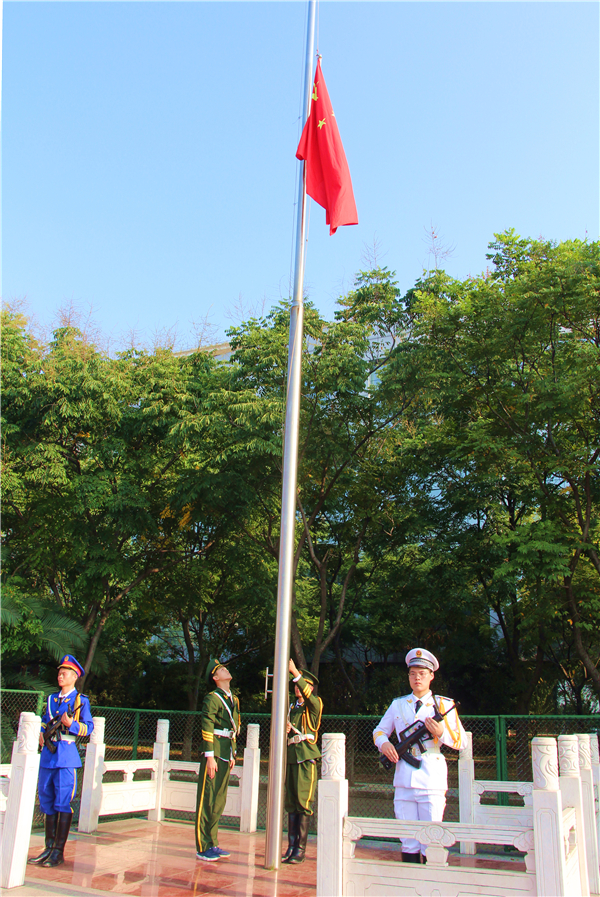 这是学校秋季学期开学的第一次升旗,负责升旗仪式的5位学生(王文博、张孝严、姚紫阳、邓思怡、李心园)都是2019级的学生,也是校国旗班成员,大家在8月29日返校当天便接到了升旗通知,并为此做了充足的准备。8月30日下午4点,5位国旗班的同学们便提前来到升旗台测试实验,练习正步,熟悉流程,炎炎酷日,每个人的衣衫皆湿、脸颊通红,沁出细密的汗珠,但是大家毫无怨言;升旗当天上午6点半,大家再次提前过来检查音响设备和试升,确保开学第一次升旗零失误。“大家在刚接到升旗通知时,既紧张又兴奋,由于时间间隔了大半年,大家都担心出错,但一想到这是返校后的第一次升旗仪式,意义重大,我们所有人都严格要求自我、互相监督、认真练习。”升旗手张孝严告诉记者,能够参与这次升旗仪式,他感到非常荣幸。
