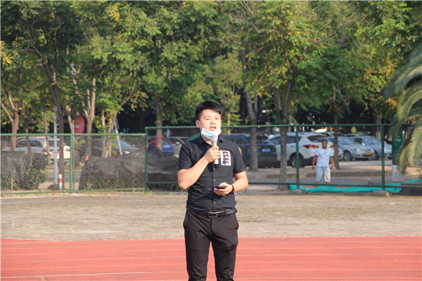 “这是一场特殊的升旗仪式,也是一次特别的‘开学礼’。我们以升旗仪式作为开学典礼,预示国家控制住了疫情,学校和城市一起重启、和祖国同步崛起;我们用国旗和国歌激励我们自己做好开学后的所有工作,用这种方式宣布新学期开始,我们已经做好了一切准备,迎接广大学子‘回家’。升旗是给我们信心,也是给同学们起航的信心。”校团委书记邱玉添介绍了此次升旗仪式的特殊意义,同时他还在国旗下讲话,叮嘱广大学子非必要不外出,安心在校学习;深刻认识到返校复学来之不易,珍惜国家抗疫成果,遵守学校防控要求;养成优良的卫生习惯,勤洗手、戴口罩、爱干净、勤锻炼,认真落实垃圾分类、光盘行动精神,遵守绿色教室、寝室、食堂等绿色校园创建要求,共建绿色校园。