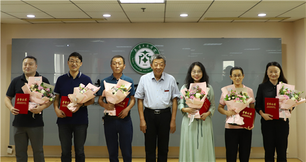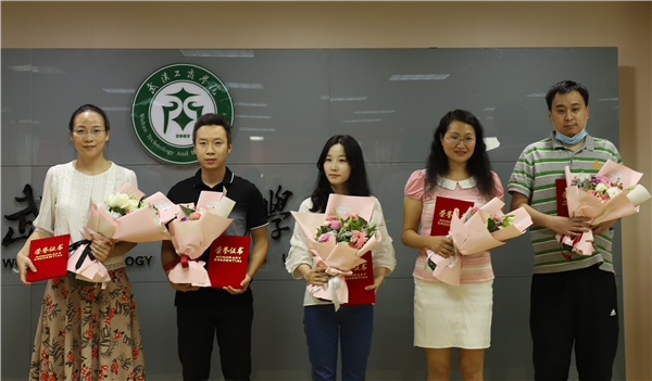图为物流学院教师袁骏获先进个人(右一) 摄影:谢晓霜