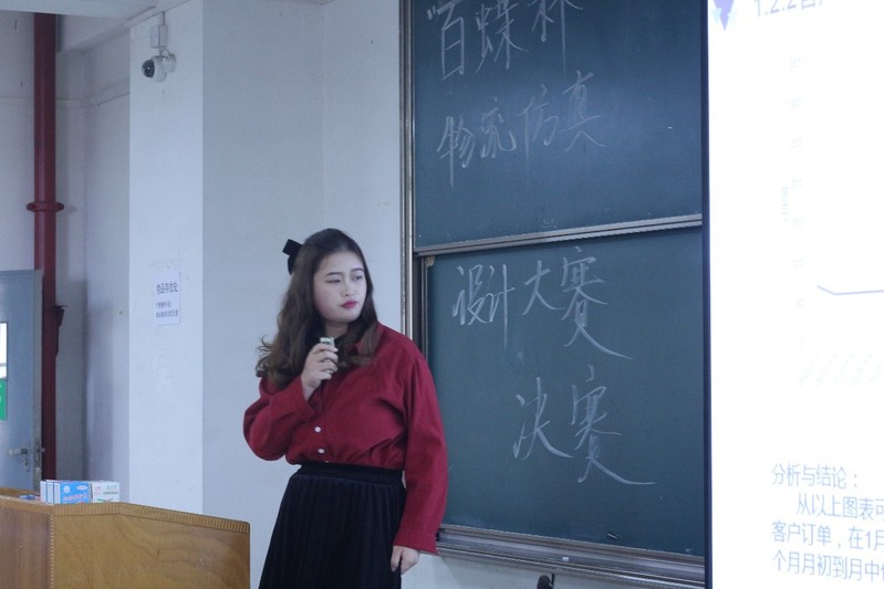 王猛老师首先为大赛致辞,他说:“首先要祝贺和表扬参加此次‘百蝶杯’并成功闯入决赛的八支队伍,这八支队伍一路坚持下来并不断优化改进,最终提交了十分优秀的方案。‘百蝶杯’作为物流学院一年一度的盛事,历届参与的同学都深有感触,它不仅考察了同学们专业方面的知识学习情况,更考验了同学们对专业理论的理解应用能力和专业综合素质。这是一个很好的锻炼提升和展示自我的舞台。”