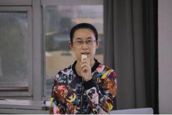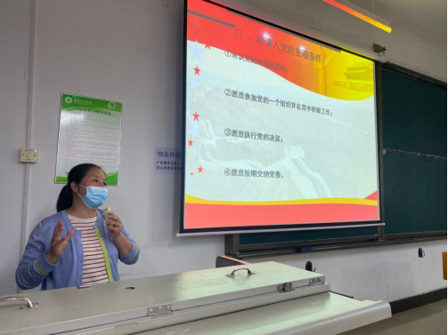 图为学生党支部书记刘惠老师正在讲课 摄影:刘陈建秋