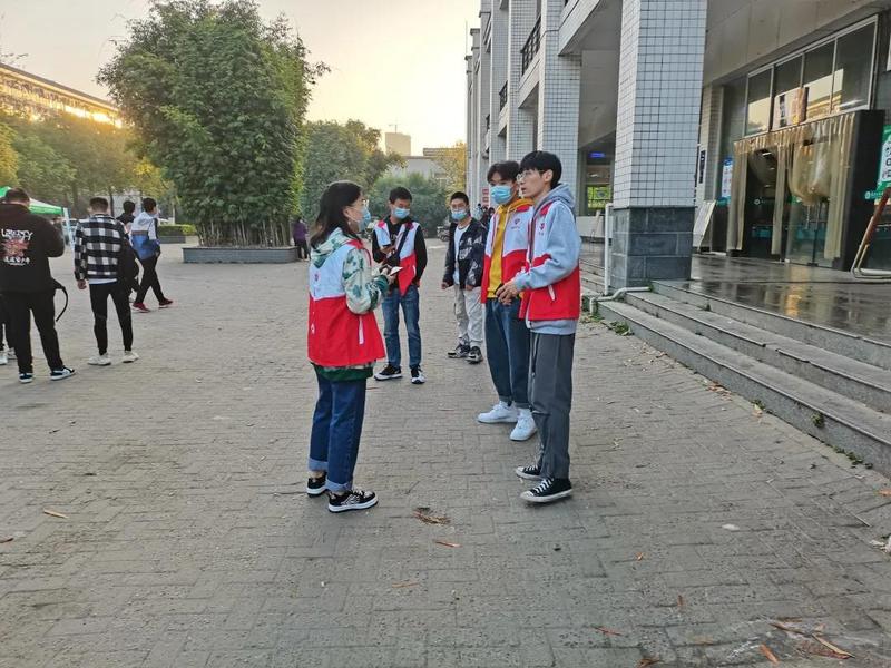 物流学院青年志愿者协会全体成员7:20在二食堂门口集合,分组搬运物资。