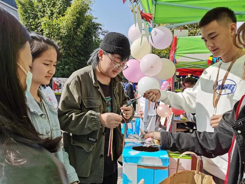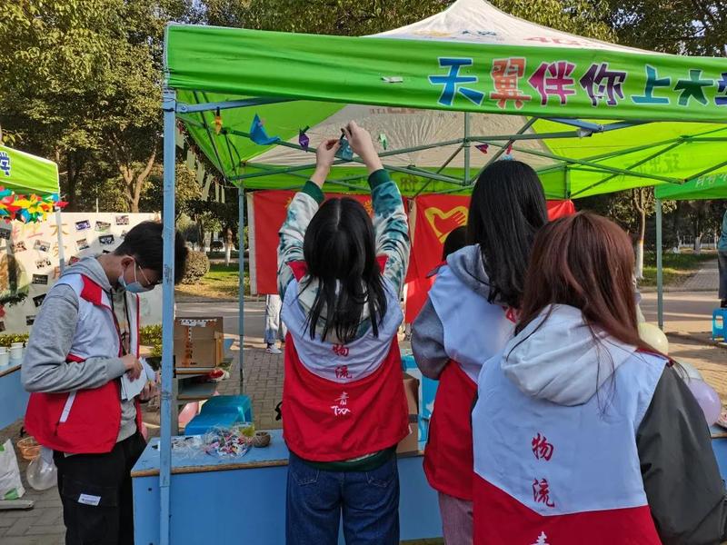 为了保证活动的顺利实行,物流学院青年志愿者协会成员早早就来二食堂布置现场,并且准备了小零食、小礼品、小游戏等待同学们的到来。