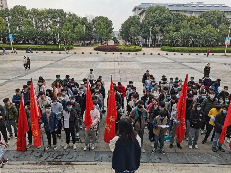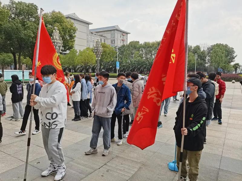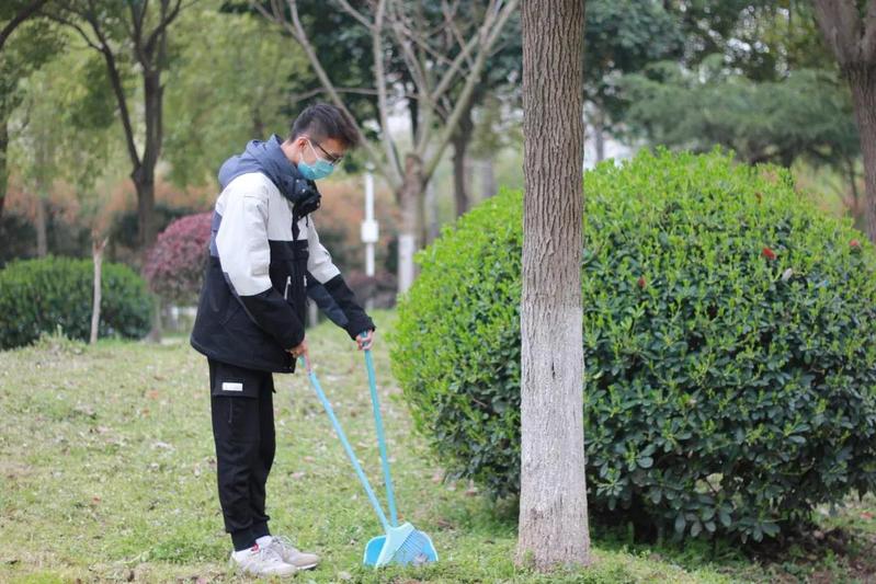 学院同学在校区内清洁
