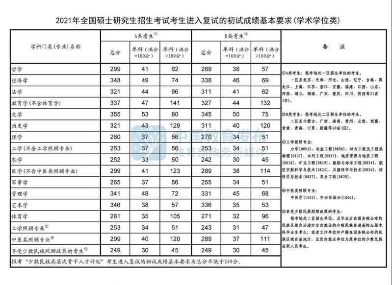 3月12日,教育部公布《2021年全国硕士研究生招生考试考生进入复试的初试成绩基本要求》(国家分数线)。根据《2021年全国硕士研究生招生工作管理规定》,招生单位要在国家分数线基础上,自主确定并公布本单位各专业考生进入复试的要求。