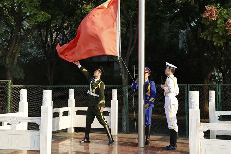 伴随着国歌的响起,鲜艳的五星红旗冉冉升起,2022级新生开学典礼正式拉开帷幕。