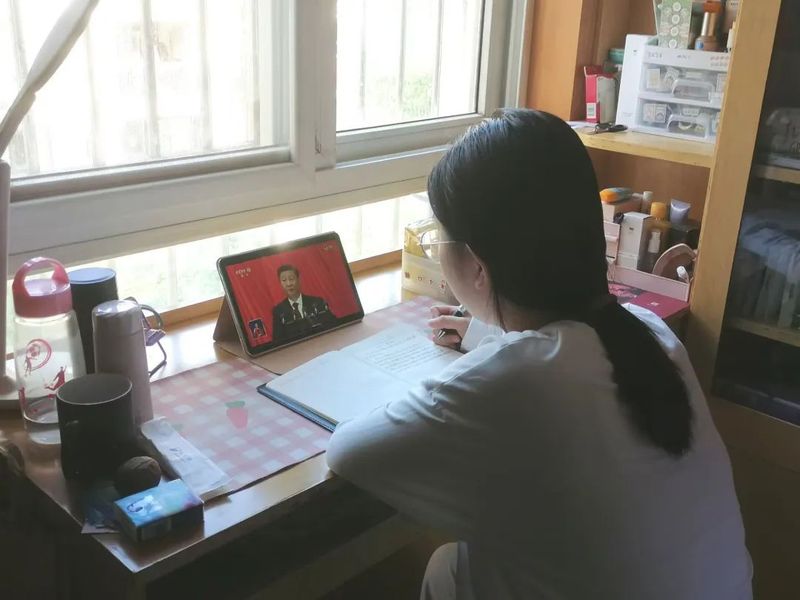 10月16日上午10时,我院学生代表共20余名在学院225会议室集中观看开幕会。入党积极分子在各自宿舍,线下同步观看直播。