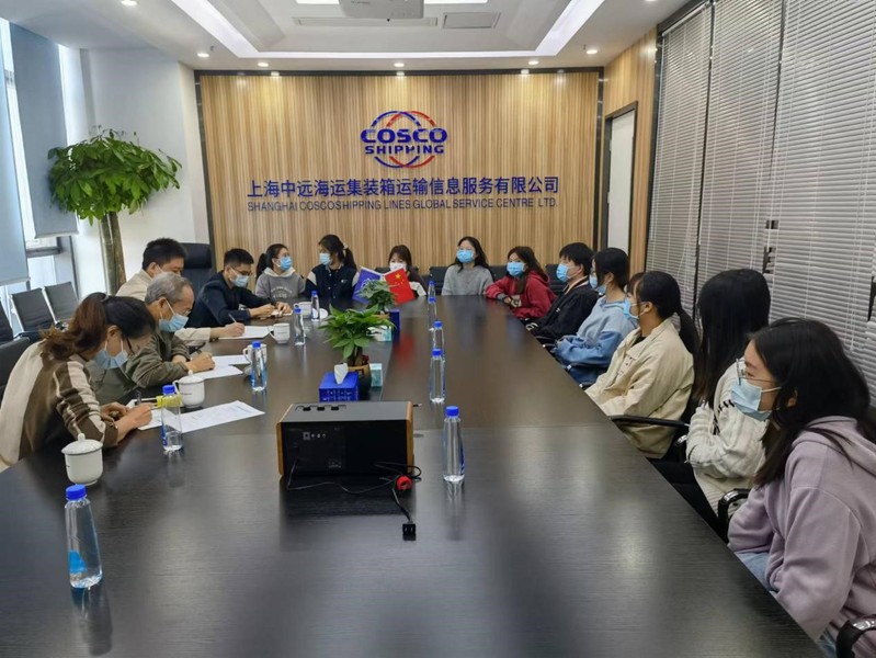 随后,物流学院领导与2019级在中远海运集运全球信息实习的学生开展座谈。在与学生的交流座谈中,学院领导关切地询问了学生的实习工作情况,在疫情下公司给予的防疫措施。同时对学生们提出殷切期望,希望他们将专业理论与实践紧密结合,踏实工作,积极进取,努力在岗位上发挥才干,成长为符合物流行业发展趋势的高素质应用型人才。