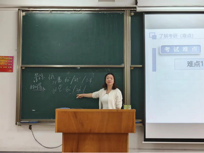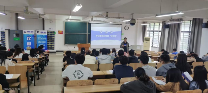 物流学院常务副院长王猛教授向同学们介绍了近几年学院的考研升学率,表示考研不是一日之功,是长期积累的学习,要合理规划时间才能成功。同时鼓励学生积极考研,锻炼自己的能力,提高自身的竞争力,开展眼界,让自己多一次选择。