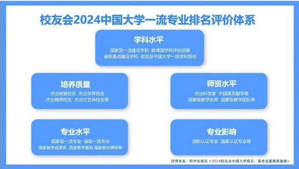 校友会2024中国大学一流专业排名评价指标由学科水平、培养质量、师资水平、专业水平和专业影响等5大指标构成,以艾瑞深大学360度全景数据平台为数据支持,涵盖教育部“双一流”建设学科、国家级一流本科专业建设点等100多项核心评价指标,全国共1226所本科高校的近6万个本科专业上榜。