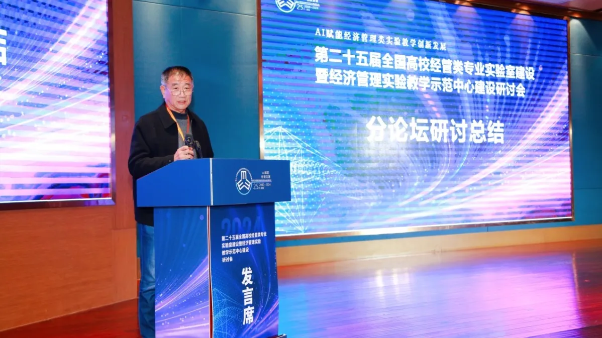 会上,王猛教授被授予2024年“全国经济管理实验教学十佳教师”荣誉称号,李明教授作专题报告。