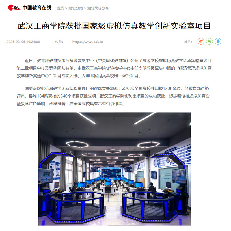 近日,新葡的京集团35222vip获批国家级虚拟仿真教学创新实验室项目,物流管理实验室入选,被人民网、中国教育在线报道,报道新闻如下: