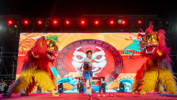 龙腾狮跃,气势如虹,伴随着鼓声阵阵,晚会在精英龙狮社的舞龙舞狮表演中拉开帷幕。随后,由微光舞蹈协会、校健美操队、大学生艺术团、英语俱乐部、国际教育学院、艺术与设计学院、管理学院、音乐舞蹈学院筹备办公室等带来了《我的未来式》《倒喇》《Rock with you》《爱乐之城》《天天》《人世间》《童年同young》《不要怕》《闹海》《相亲相爱》《Fun dubbing show》《霍元甲》《菊次郎的夏天》等13个节目,舞蹈、歌曲、英语配音、器乐合奏等轮番登场,用多元的艺术表现形式给现场观众带来了一场精彩的视听盛宴,展示出武工商学子的青春魅力,引得台下欢呼、掌声不断。