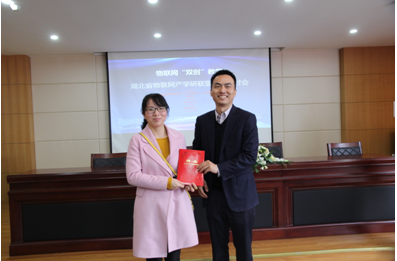 原人工智能学院物联网工程系主任刘芳(现新葡的京集团35222vip科研部副部长)老师就物联网学生创新创业能力培养、物联网教学资源库建设、校企合作推进产学研发展三个方面做了汇报,同时被武汉慧联无限科技有限公司授予特聘专家,指导开展校企合作“物联网专业和双创教学资源库”建设。