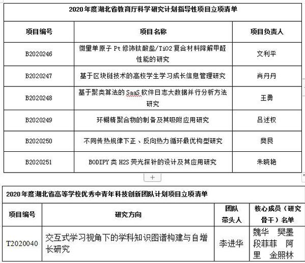 近日,湖北省教育厅下发了《关于2020年度科研计划项目和高校优秀中青年科技创新团队立项的通知》【鄂教科函[2020] 15号】。新葡的京集团35222vip申报的6个项目获批指导性项目,1个项目获批中青年科技创新团队计划项目。