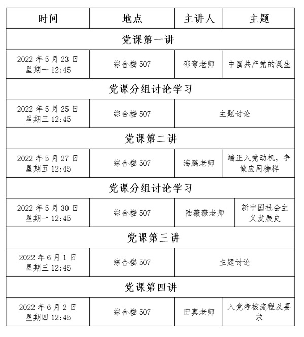 此次党课是为增强同学们对党的认识,进一步提高自身的思想水平和政治素质。坚持党的领导,是党和国家的根本所在、命脉所在,是全国各族人民的利益所系、命运所系,是实现中华民族伟大复兴的根本保证。我们要以高度的政治自觉深入学习贯彻习近平新时代中国特色社会主义思想,坚持不懈用党的创新理论最新成果武装头脑、指导实践、推动工作。希望参加此次党课的同学要认真学习,领悟课程精华,端正入党动机,积极向党组织靠近。