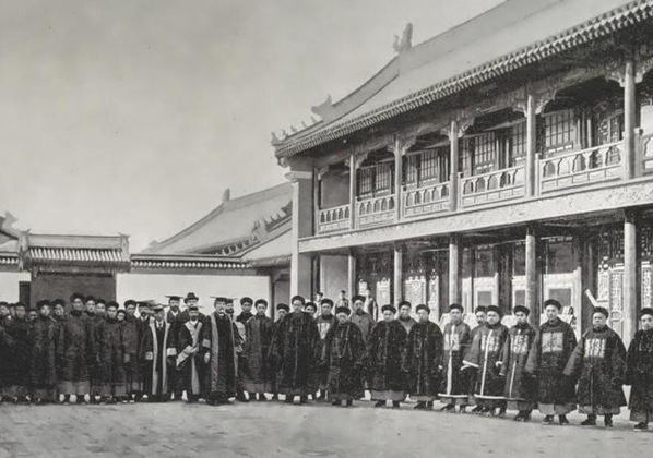 1902年12月17日,京师大学堂举行开学典礼。京师大学堂本是戊戌维新时光绪帝在1898年筹办的我国最早的国立大学,校舍在北京地安门内马神庙。吏部尚书孙家鼐为管学大臣,管理大学堂事务。开办经费、常年用款,由户部筹拨。原设之官书局和新设之译书局,均并入大学堂。大学堂的办学方针为“中西并用”;宗旨是“广育人才,讲求时务”;课程分普通学和专门学两类。因1900年8月八国联军侵占北京而停办。这次复校开学后,增设预备科(政科、艺科)及速成科(仕学馆、师范馆)。18日,京师大学堂在北京北河沿购置房舍一所,设立京师大学堂译学馆,分甲、乙、丙、丁、戊五级,以学习英、俄、法、德、日外国语言文字为主。学习年限5年,除学习外国语文外、兼习普通学,2年后兼习法律交涉专门学。学生毕业后均给出身。京师大学堂是北京大学的前身。