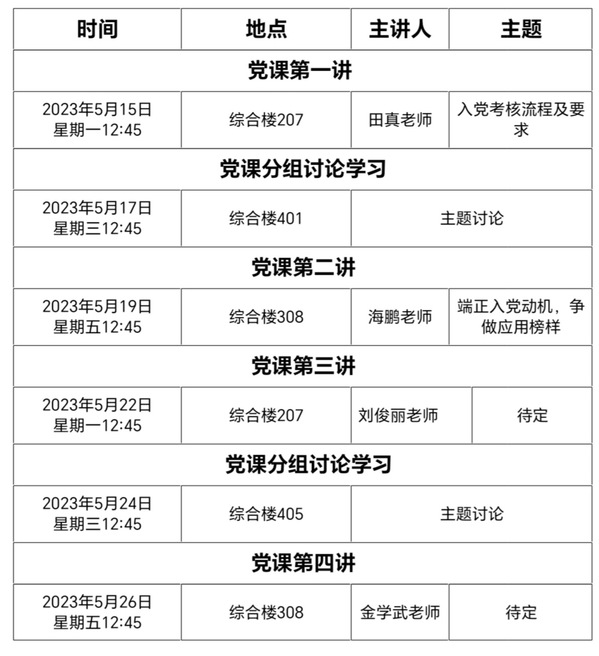 此次党课是为增强同学们对党的认识,弘扬民族精神,立报国之志,共同凝聚起同心共筑中国梦的磅礴力量,做报国之才,为强国的建设作出积极贡献,将爱国情、强国志、报国行融入人生历程,让青春在新时代的广阔天地中绽放,让人生在中国梦的奋进追逐中出彩。希望参加此次党课的同学要认真学习,领悟课程精华,端正入党动机,积极向党组织靠近。