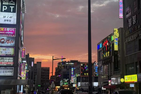 而当夜幕降临,另一种活力开始苏醒——霓虹灯牌依次亮起,车辆川流不息,黄昏的天色与都市的灯光交织成一首视觉的诗。